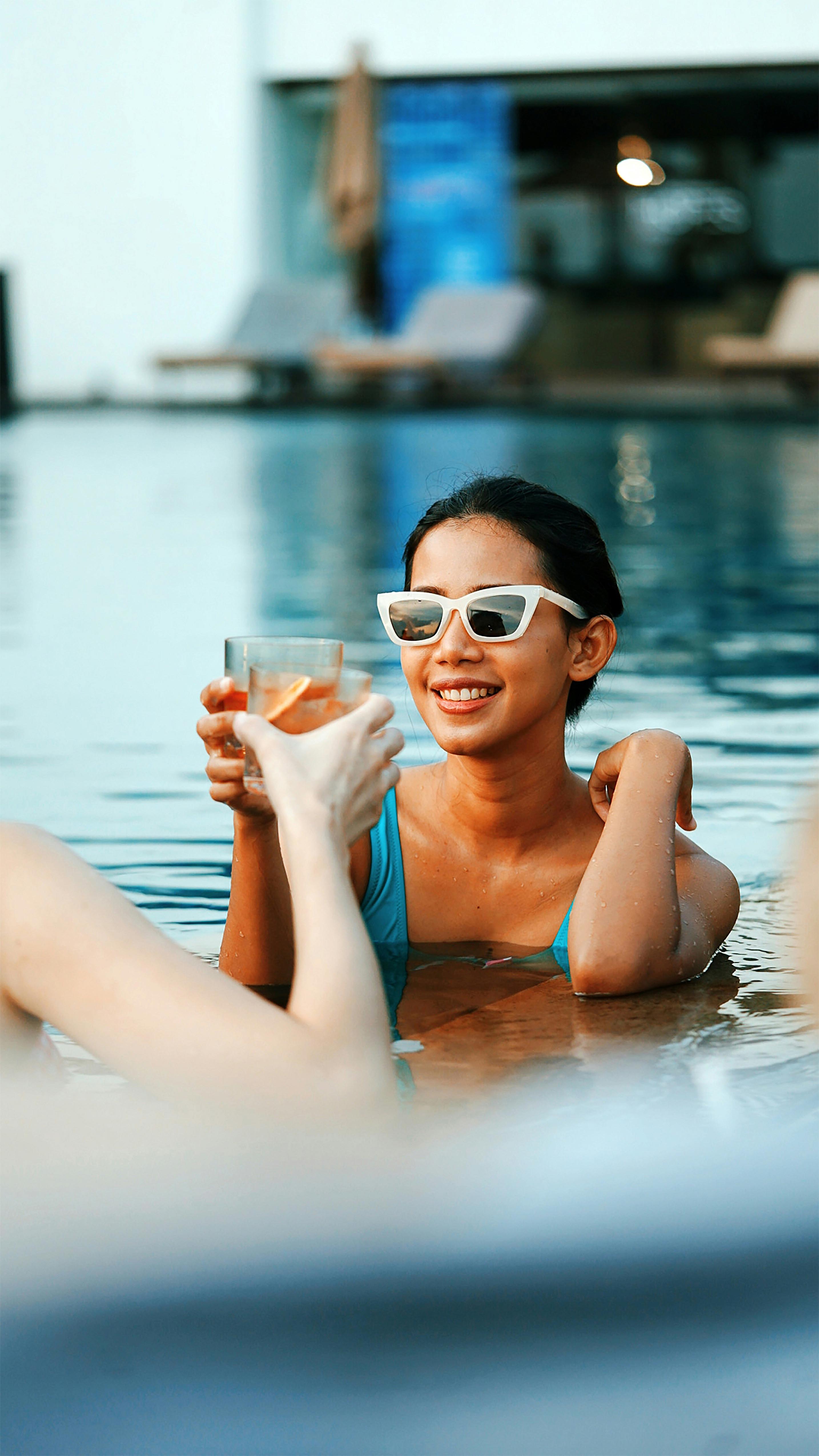 Relax like you mean it — bask in the sun, lounge in shady cabanas, and order poolside delivery from Ciclops.